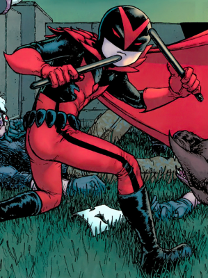Esto le permite trabajar en equipo con Jason Todd, quien momentáneamente había estado utilizando la identidad Wingman y juntos