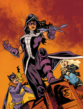 y no sabía cómo combatirlos, hasta que de pronto entró Batman al lugar. Entonces decidió emplear métodos similares y creó la identidad de "La Cazadora". Así se encargó del asesino y de Steven Mandragora.